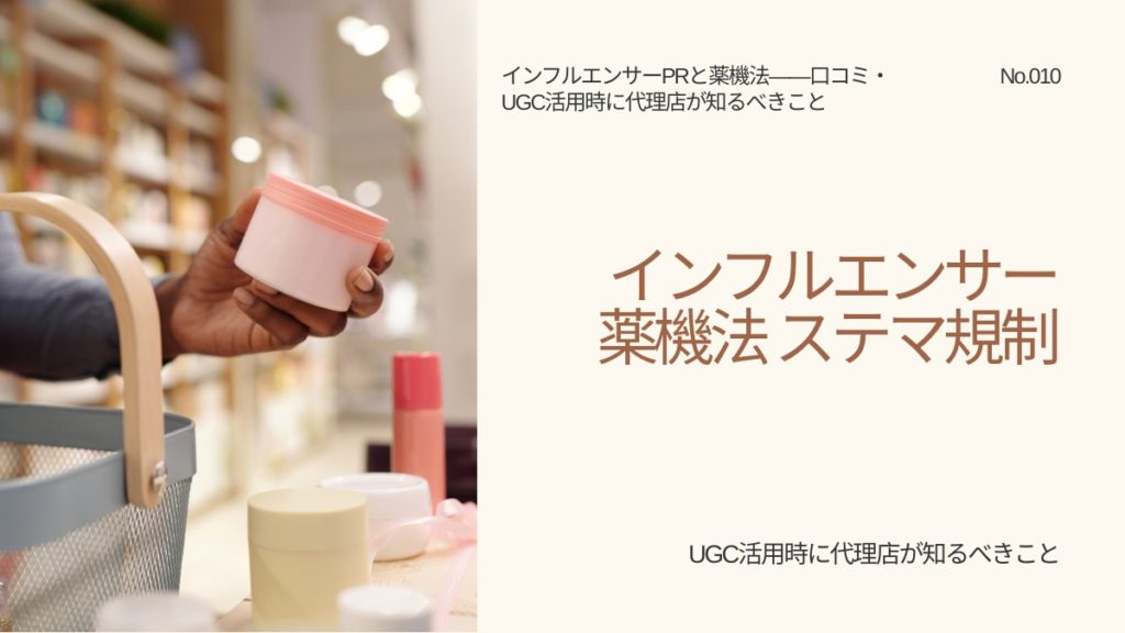 【No.010】インフルエンサーPRと薬機法——口コミ・UGC活用時に代理店が知るべきこと