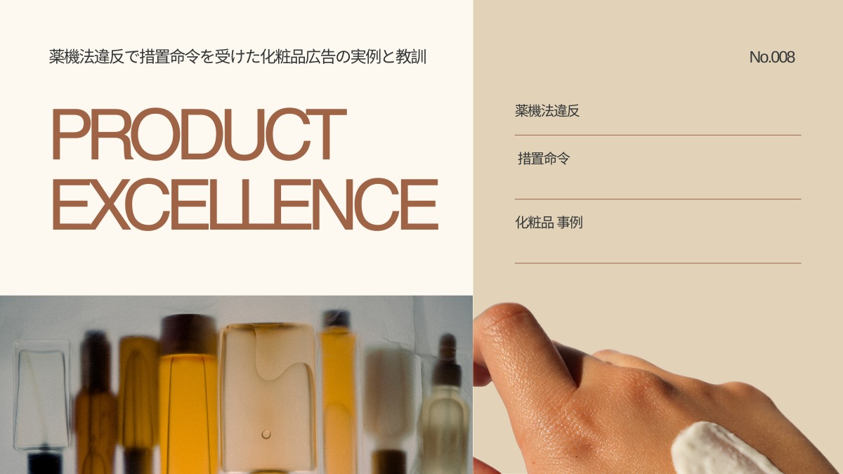 薬機法・景品表示法の行政指導事例は、「どのような表現が問題になるか」の最もリアルな教科書です。措置命令は大企業だけでなく中小の化粧品ブランド・ECサイトにも出されており、業界規模に関わらずリスクは存在します。
